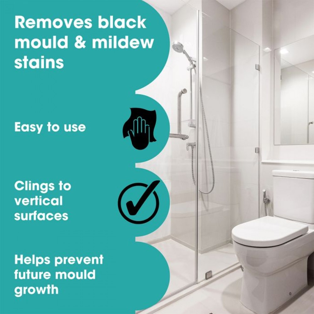 A. The purpose of the gel is the same as the spray version: to remove mould from hard surfaces, but the difference is that the thick viscosity of the gel version is able to cling onto vertical surfaces so that is doesn't run down the wall. The Mould Remover Gel is best used on silicone and grout, which tend to require the product to dwell for a lot longer to fully remove the mould stains.