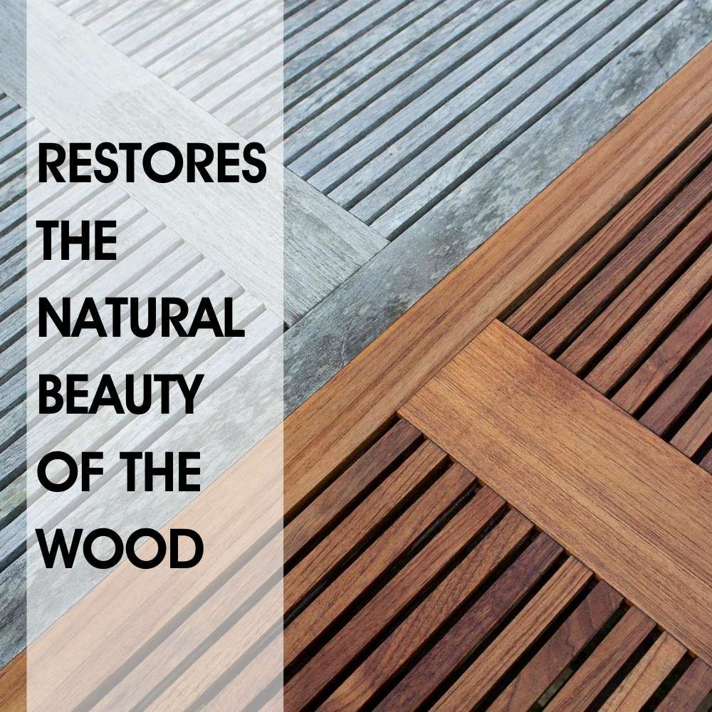 Outdoor wood: Use our Teak Cleaner to remove any dirt and grime. The Teak Cleaner will also help to restore the colour if the wood is looking grey.